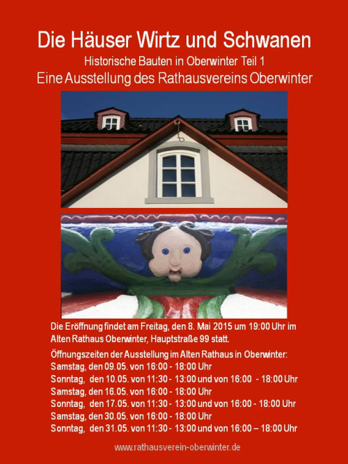 Die Reihe „Historische Bauten“ wird voraussichtlich mit den Häusern Zettelmeier und Fritzeburg fortgesetzt. Auch zu dieser Ausstellung wurde wieder eine Broschüre mit 48 Seiten erarbeitet, die für 3,50 Euro bei Lena´s Cafe in Oberwinter, in Remagen bei Hauffes Buchsalon, oder beim Rathausverein zu beziehen ist.