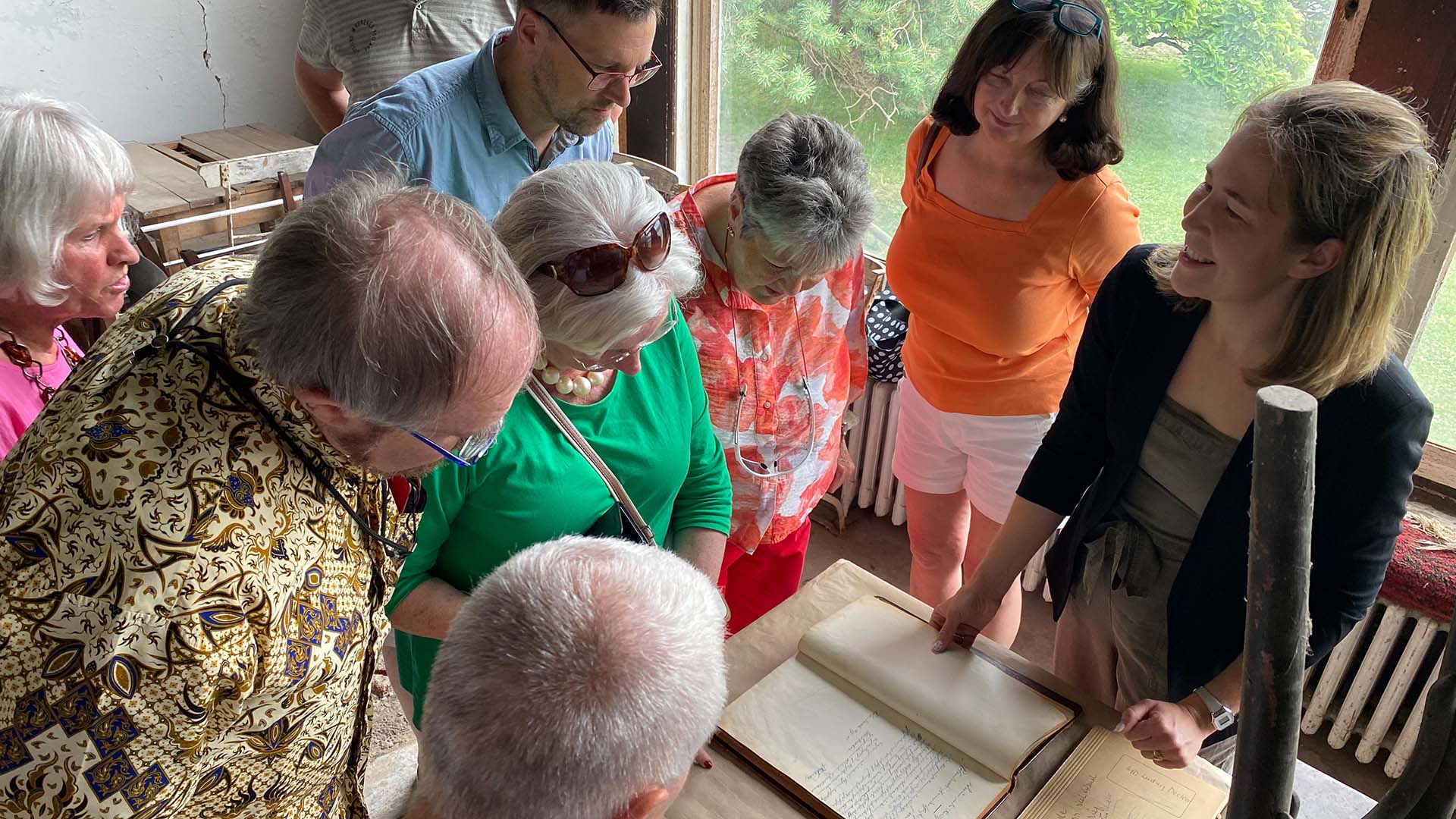 Empfangen wurden die Gäste von Diana Bico und Lene Savchenko von der Deutschen Stiftung Denkmalschutz. Frau Savchenko, die sich intensiv mit der Geschichte des Hauses beschäftigt hat, führte die Gruppe mit großer Sachkenntnis durch das historische Gebäude und nahm die Teilnehmenden mit auf eine spannende Zeitreise durch verschiedene Epochen.