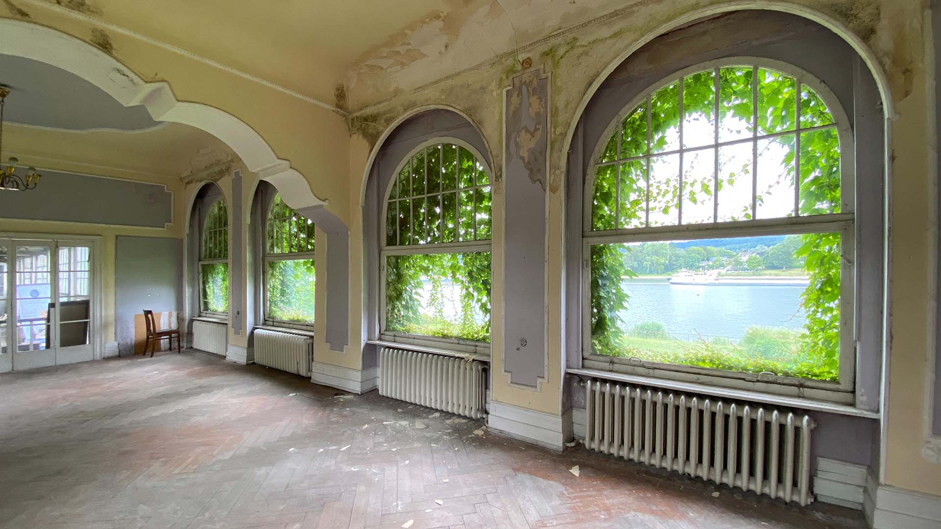 Der aktuelle Zustand des Hauses ist stark renovierungsbedürftig. Dennoch wirkt es in vielen Bereichen wie eine authentische Zeitkapsel. Besonders eindrucksvoll präsentierte sich den Besuchern der ehemalige Küchenbereich im Keller: Der massive Kohleherd aus der Hotelzeit steht dort wie ein stilles Denkmal vergangener Tage. Auch alte Türen, Waschbecken und Einbauten zeugen vom ursprünglichen Charakter des Hauses. Die Ball- und Frühstücksräume im Erdgeschoss lassen noch heute den Charme und die Atmosphäre der "guten alten Zeit" erahnen.