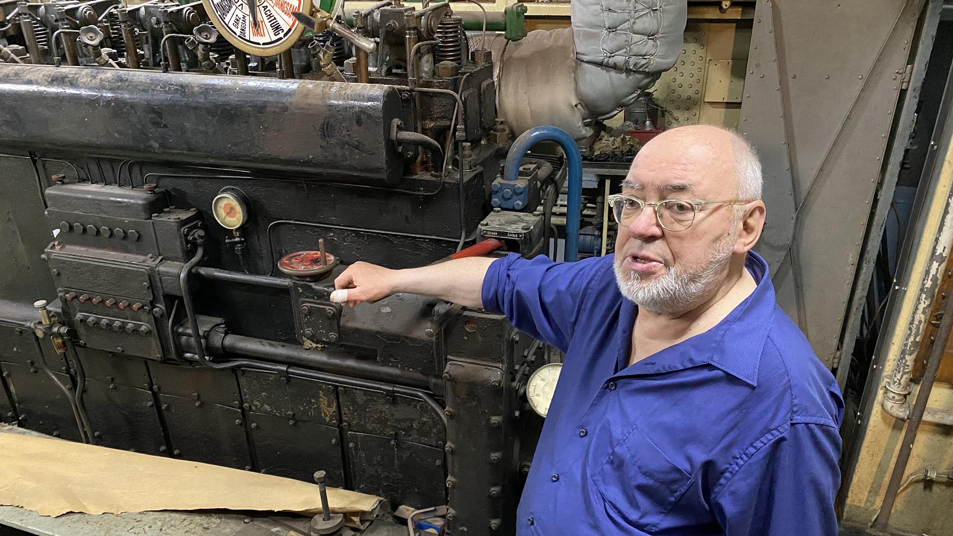 Um auf das Schiff zu gelangen, mussten die Besucher zunächst den „nicht barrierefreien Zugang“, eine schmale Holzplanke überwinden. Dann standen aber alle Räume zur Besichtigung offen. Dabei beeindruckte zum einen die bereits geleistete Arbeit, aber zum anderen offenbarten sich auch die noch offenen Baustellen. Den Höhepunkt bildete die Besichtigung des Maschinenraums, was einer Zeitreise gleich kam, denn der hatte nichts mit dem eines modernen Rheinschiffes zu tun. Man hatte sofort das Bild des Maschinisten mit dem Ölkännchen vor Augen, der dafür sorgt das alle Ventile und Hebel ordnungsgemäß ihren Dienst verrichten.